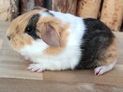 Valencia unter der Lärche (Glatthaar in Schwarz-Buff-Weiß) X Iamail unter der Lärche (Glatthaar in Schwarz-Buff-Weiß)